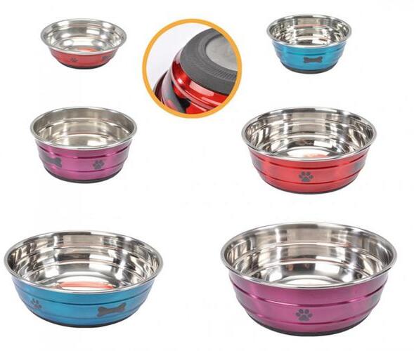 Linea New Selecta Rozsdamentes színes etető/itató tálak csúszásgátló, zajcsökkentő gumival