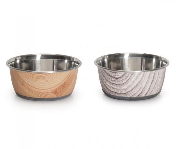 Rozsdamentes különböző famintás etető/itató tálak csúszásgátló, zajcsökkentő gumival