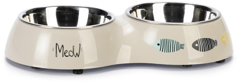 A zooplus. hu kínálatából: A KarlieYaren Diner Set két, eledel és víz számára is alkalmas cicatálból álló készlet. A műanyag szett világosszürke színű, oldalát aranyos hal motívum és "Meow" felirat díszíti. A két beépített tál könnyen ápolható, rozsdamentes acélból készül, könnyedén kivehető, és mosogatógépben tisztítható. A szett alján speciális csúszásgátló lábacskák kaptak helyet, így a tálkakészlet még sima padlófelületen sem csúszkál el kedvence jóízű falatozása közben. A Karlie Yaren Diner Set jellemzői:Kétrészes etetőkészlet macskáknakMindennapi használatra: nedveseledel, száraztáp vagy víz tálalására is alkalmasKönnyen tisztítható: kivehető, mosogatógépben tisztítható rozsdamentes acél tálakCsúszásmentes: az alján lévő csúszásgátló lábaknak hálaAranyos kinézet: hal motívummal és "Meow" felirattalAnyaga: műanyag / rozsdamentes acélMérete:Teljes méret: H 27 x Sz 14 x M 5 cmÁtmérő: Ø 11 cmKapacitás: 2 x 200 mlSzíne: világosszürkeÁpolása: mosogatógépben tisztítható